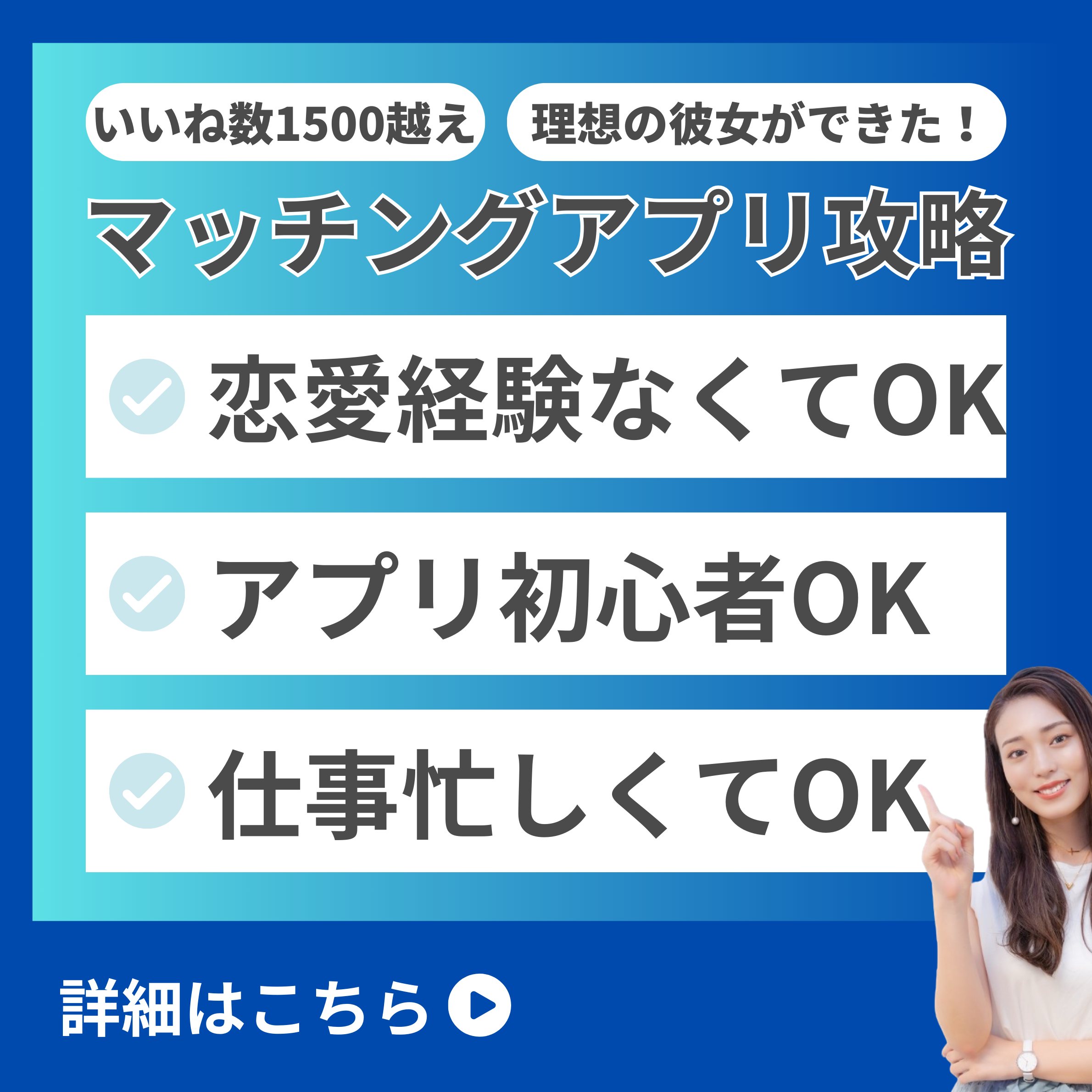 マッチングアプリでの活動において、大切なのはまずは出会いの数を確保することです。 しかし、ただ闇雲にたくさんの人とマッチングしているだけでは理想の出会いを引き寄せることはできません。 私の経験や知識を活かし、あなたが自分自身の魅力や相手との相性を見極めつつ、理想のパートナーと出会えるお手伝いをさせていただきます。